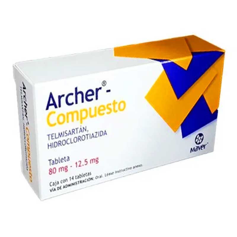 ARCHER-COMPUESTO, Hidroclorotiazida 12.5 mg, Telmisartan 80 mg, Tabletas c/14, 7502009746376